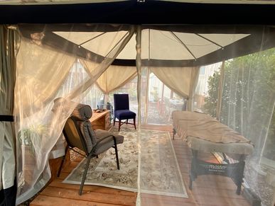 Our office and home gazebo spaces are sterilized after each appointment and the we all wear masks, including the patient.